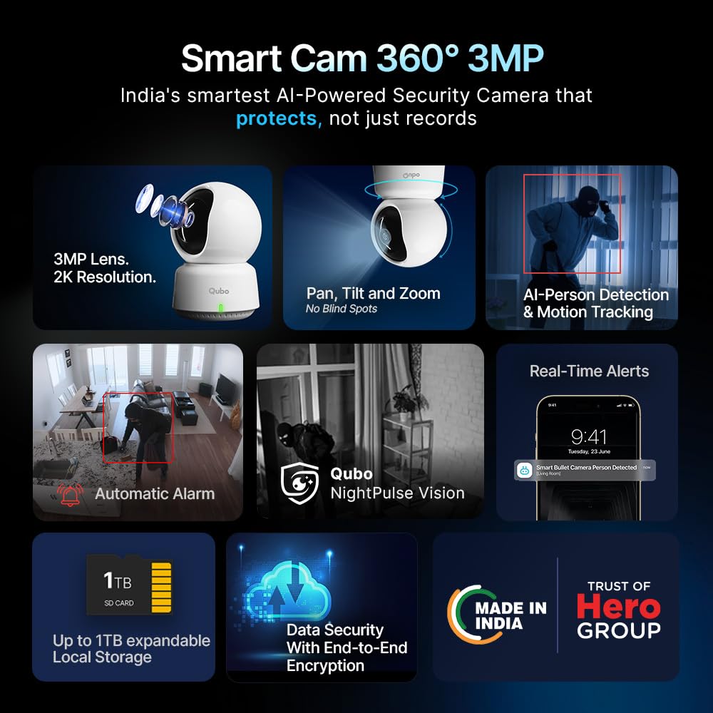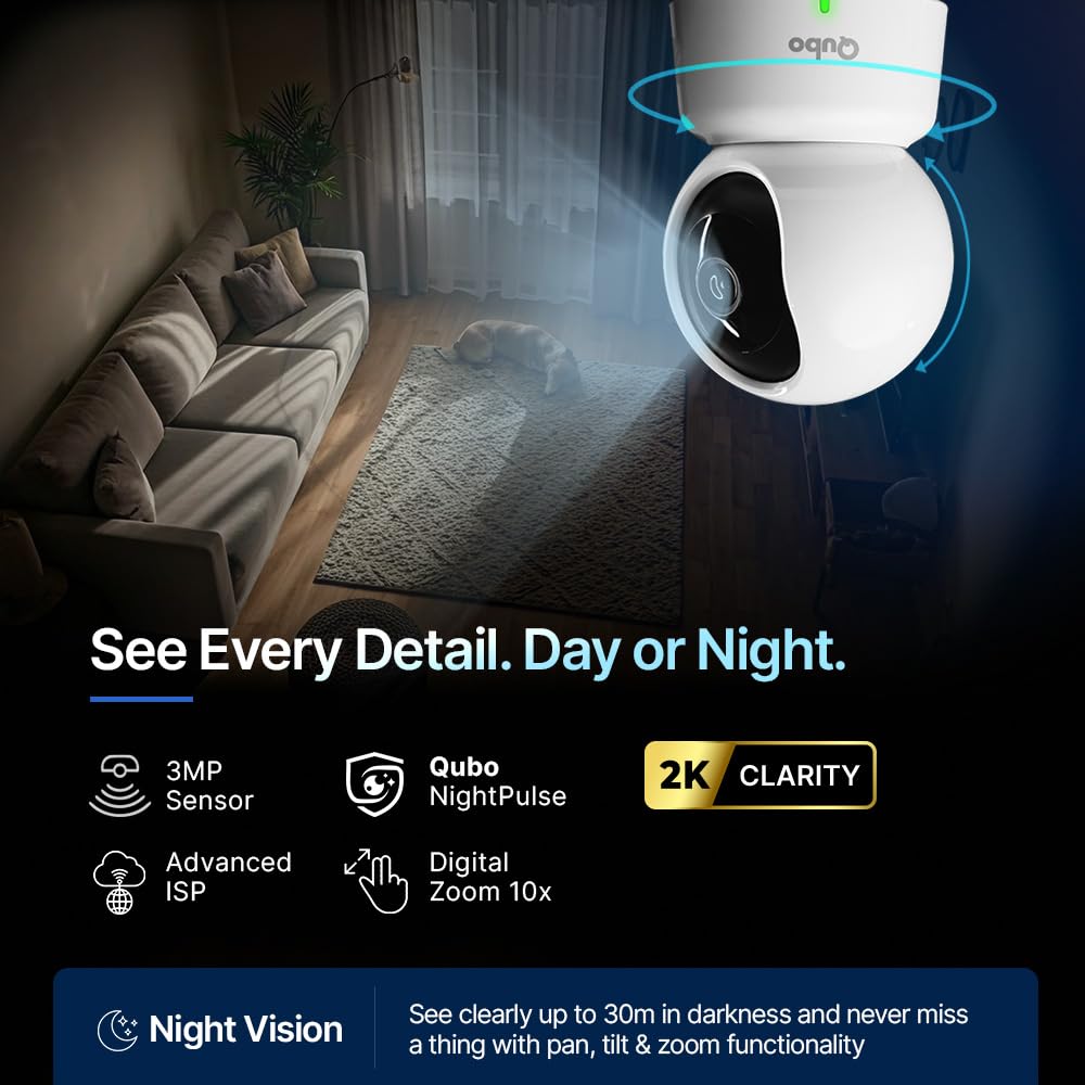 ![Qubo Smart 360° 3MP [2K] Wi-Fi Security Camera [Pack of 2] | Indoor CCTV Cam for Home | AI Person Detection | Automatic Alarm | App Alerts | NightPulse Vision | SD & Cloud... - Image 10](https://m.media-amazon.com/images/I/61H7BU9kP4L._SL1500_.jpg)